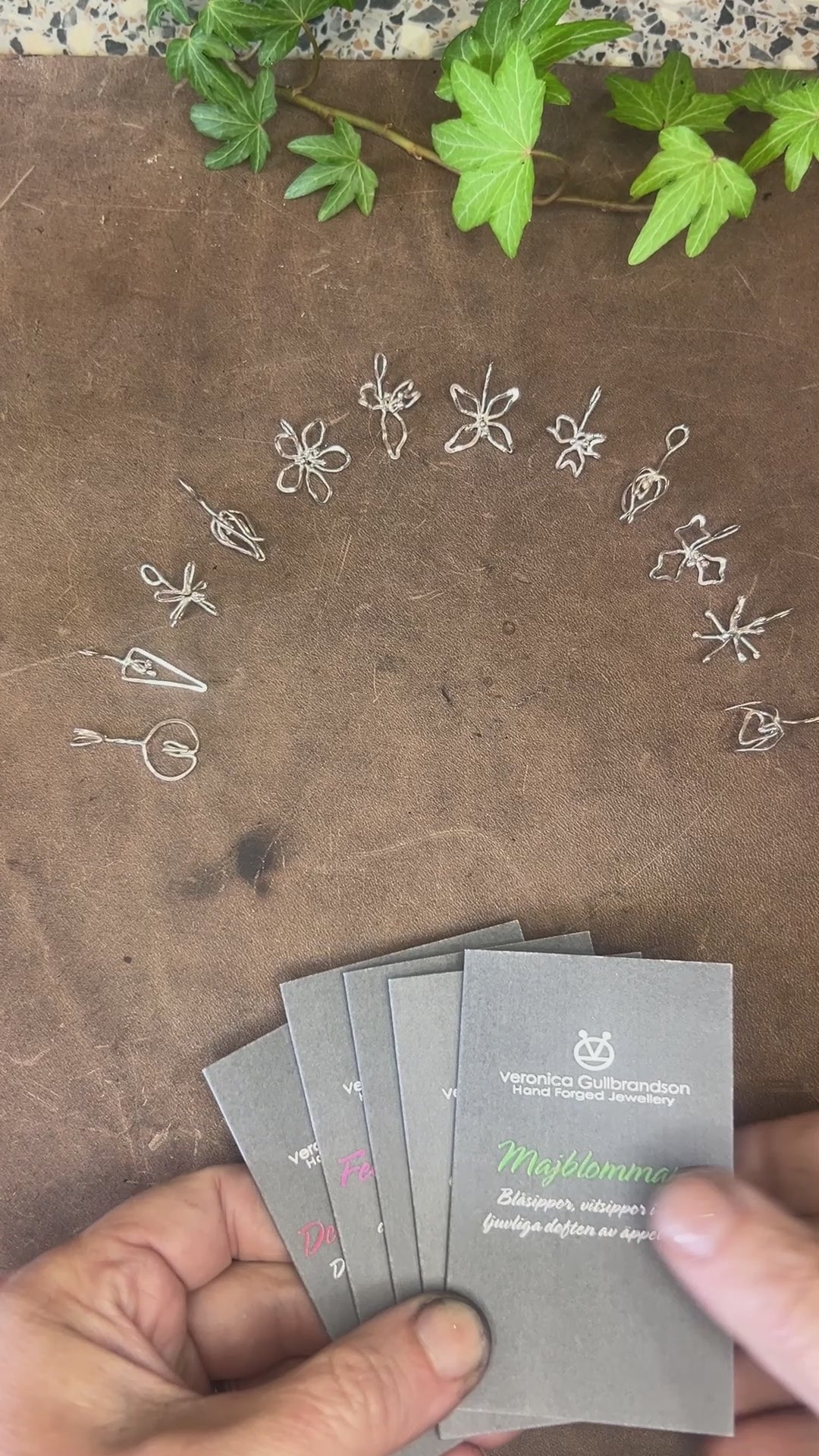 Organiskt formad blomma, handsmidd av en tråd i återvunnen ädelmetall för att förstärka känslan av att allt hänger samman. Blomman är symbolen för livskraft, och skönhet, men också förgänglighet. Denna blomma vill mjukt påminna dig om att vara i nuet, men kommer inte att vissna. Har du en speciell händelse blomman blir förknippad till, kommer den att påminna dig om den.