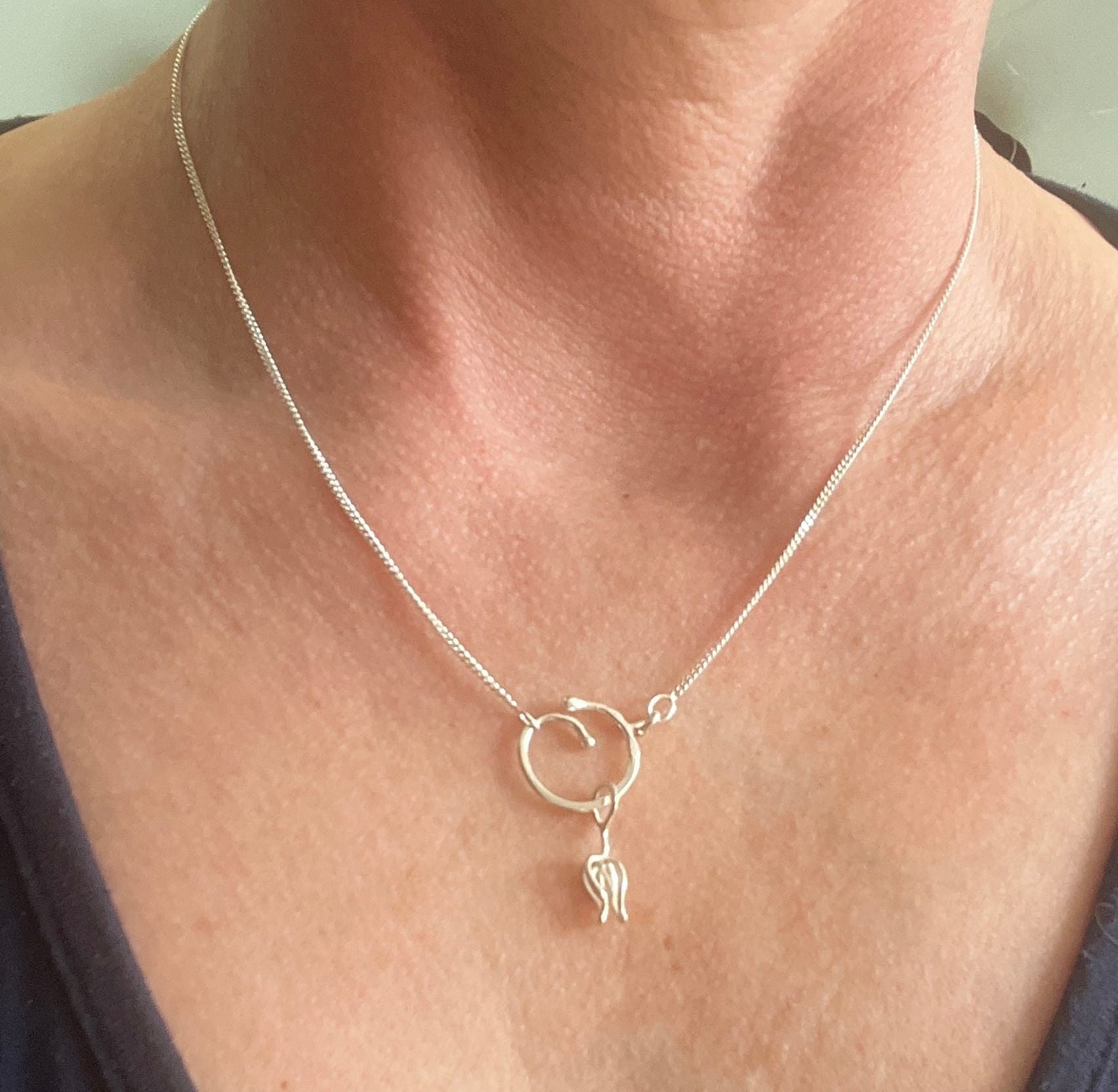 Organiskt formad blomma, handsmidd av en tråd i återvunnet silver för att förstärka känslan av att allt hänger samman. Blomman är symbolen för livskraft, och skönhet, men också förgänglighet. Denna blomma vill mjukt påminna dig om att vara i nuet, men kommer inte att vissna. Har du en speciell händelse blomman blir förknippad till, kommer den att påminna dig om den.